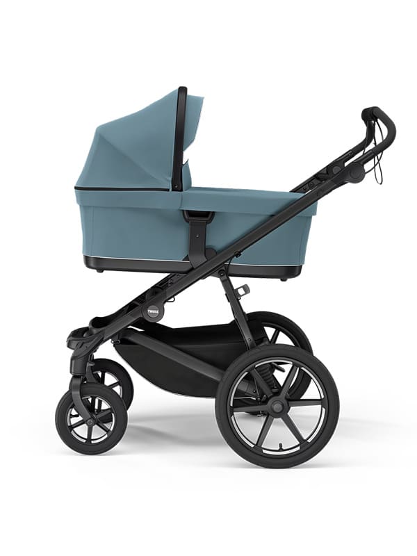 Vagnen kan användas redan från födseln med Thule liggdel eller bilstolsadapter för babyskydd (säljs separat). Säte och sufflett kan tas bort för att skapa en stilren, lätt kombivagn för de allra minsta.