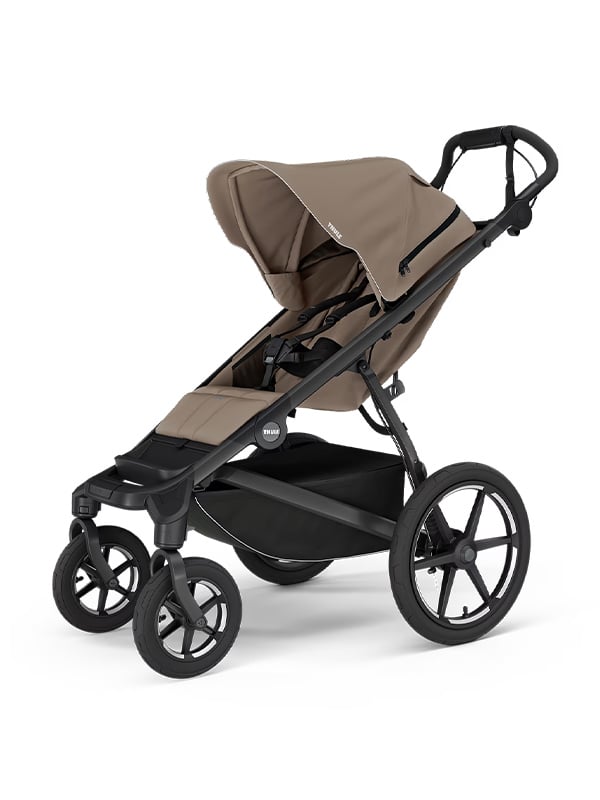 Vagnen kan användas redan från födseln med Thule liggdel eller bilstolsadapter för babyskydd (säljs separat). Säte och sufflett kan tas bort för att skapa en stilren, lätt kombivagn för de allra minsta.